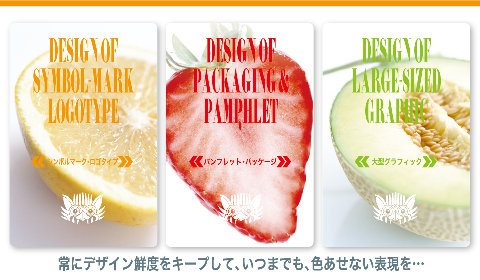大形グラフィックでは、 ポスター・看板・幟旗・垂幕等、 広告・宣伝物のデザイン全般に至るまで、